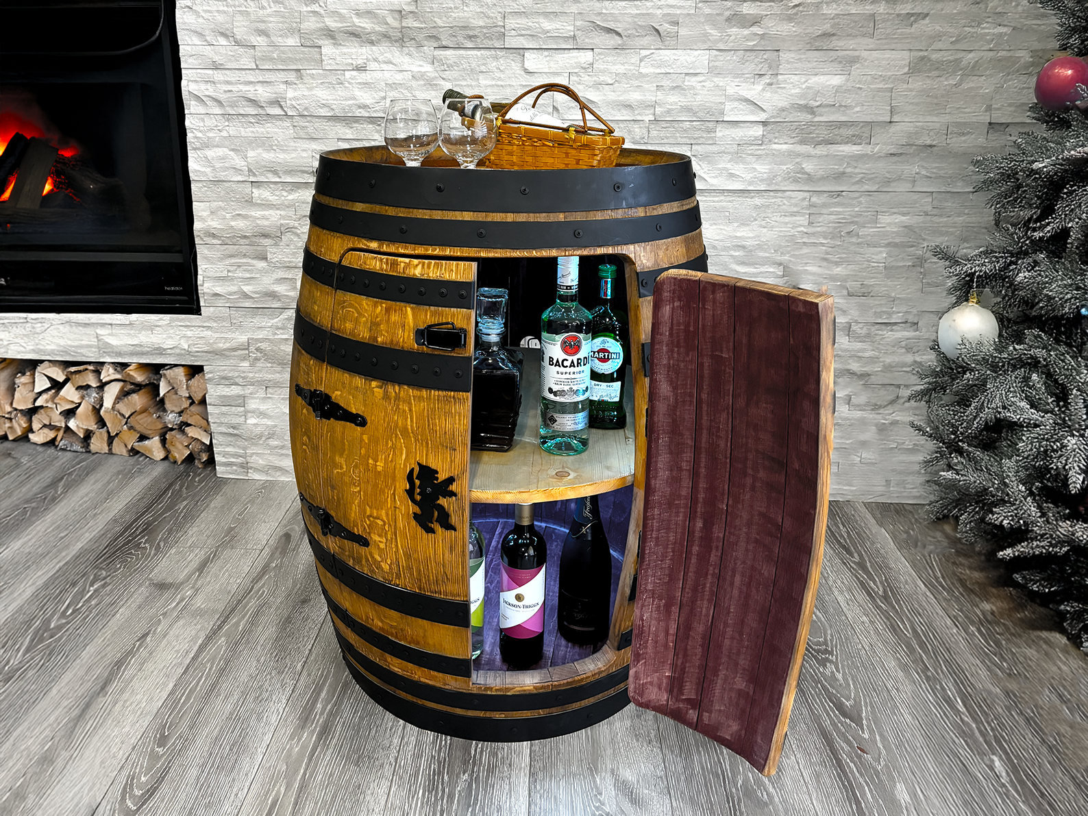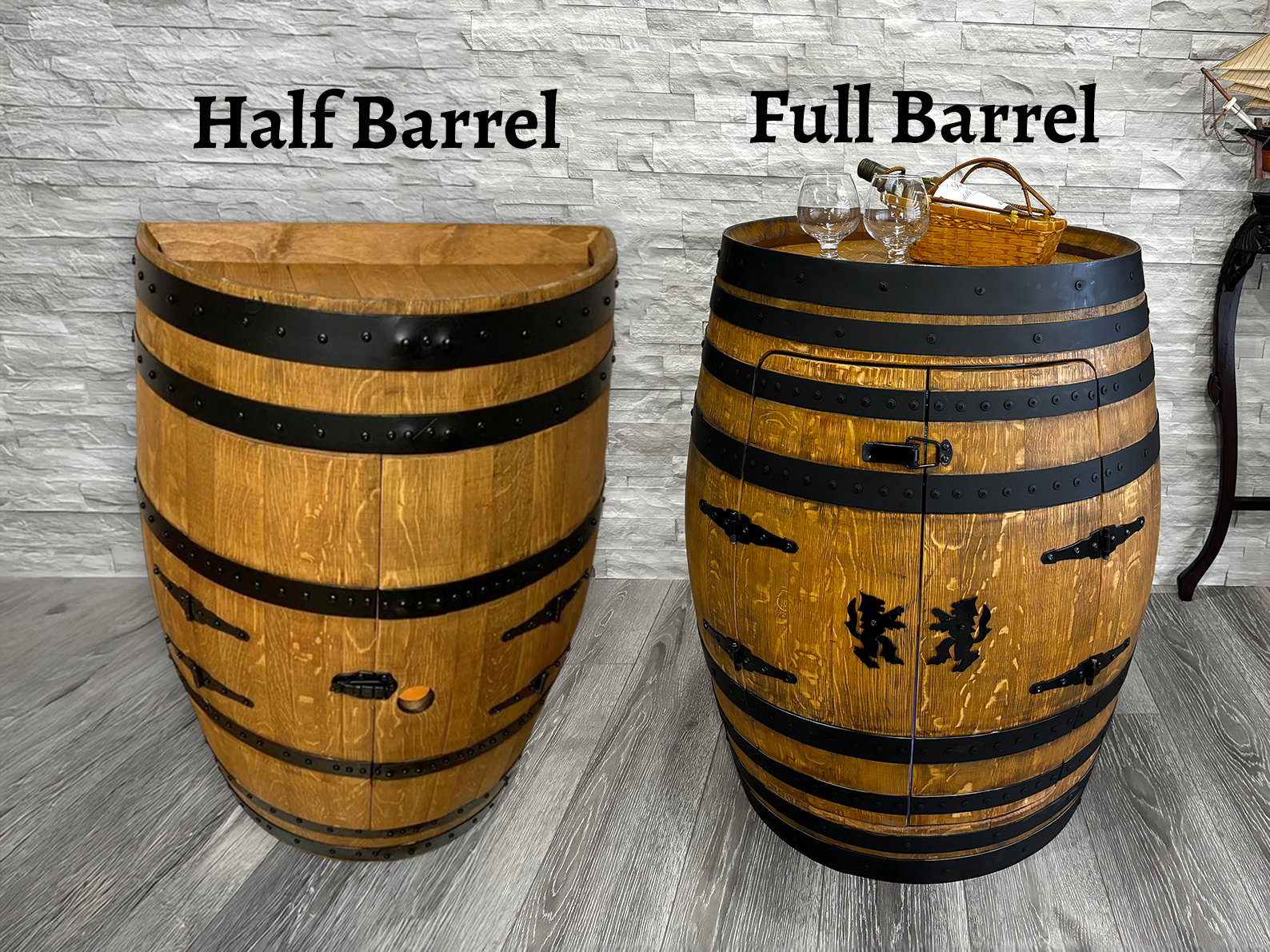 Authentic Whiskey Aged Barrel Cabinet w/ LED lights | Available Half/Full Cabinet Handcrafted from Real Whiskey Barrel