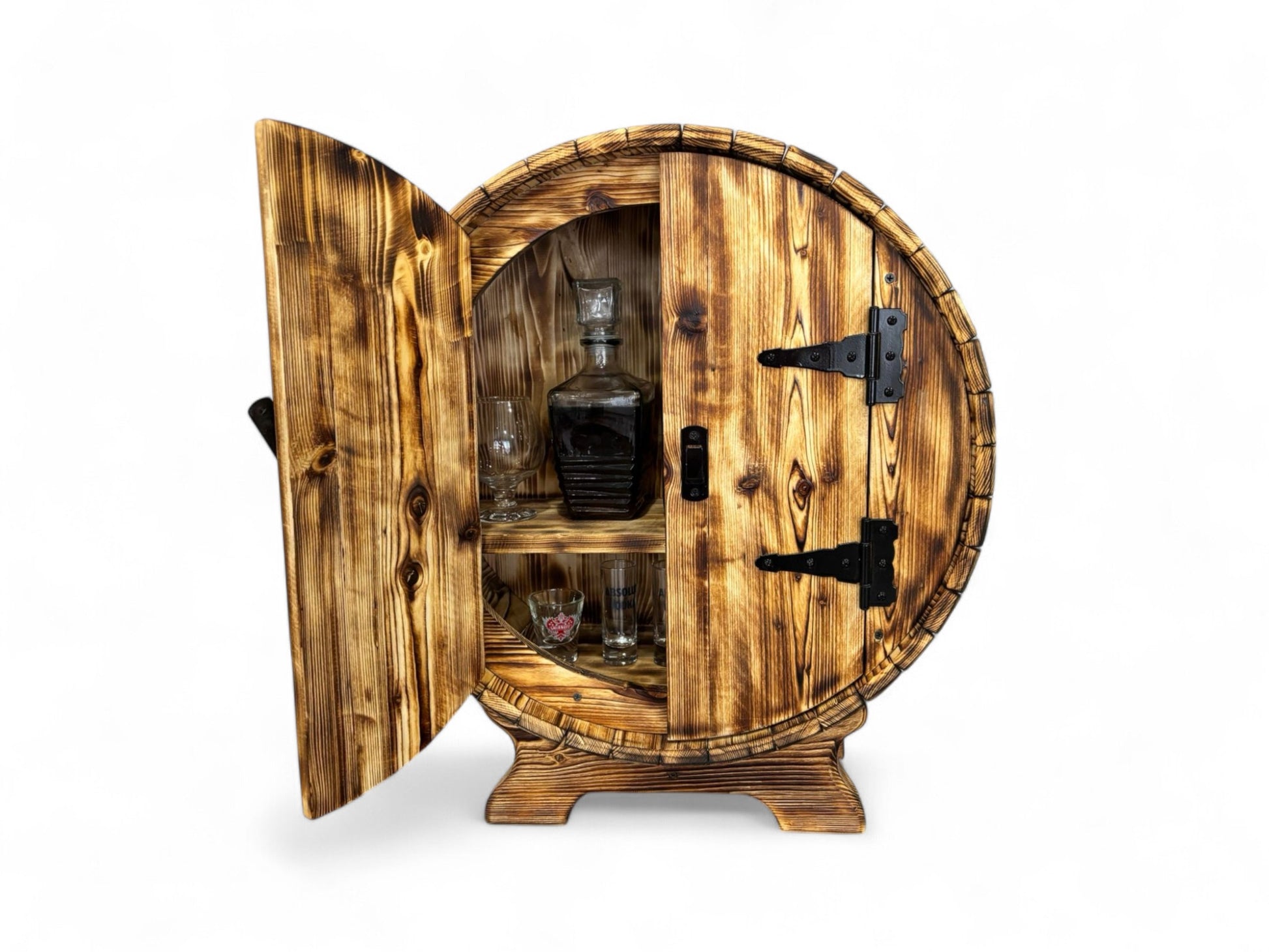 Hand-Made Wine Whiskey Barrel liquor stand | display bar tabletop | bourbon barrel cabinet | Liquor Rack | Alcohol Display | Wine Shelf
