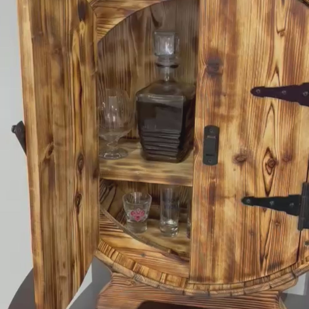 Hand-Made Wine Whiskey Barrel liquor cabinet | wall display bar shelf | bourbon barrel cabinet | Liquor Rack | Alcohol Display | Wine Shelf
