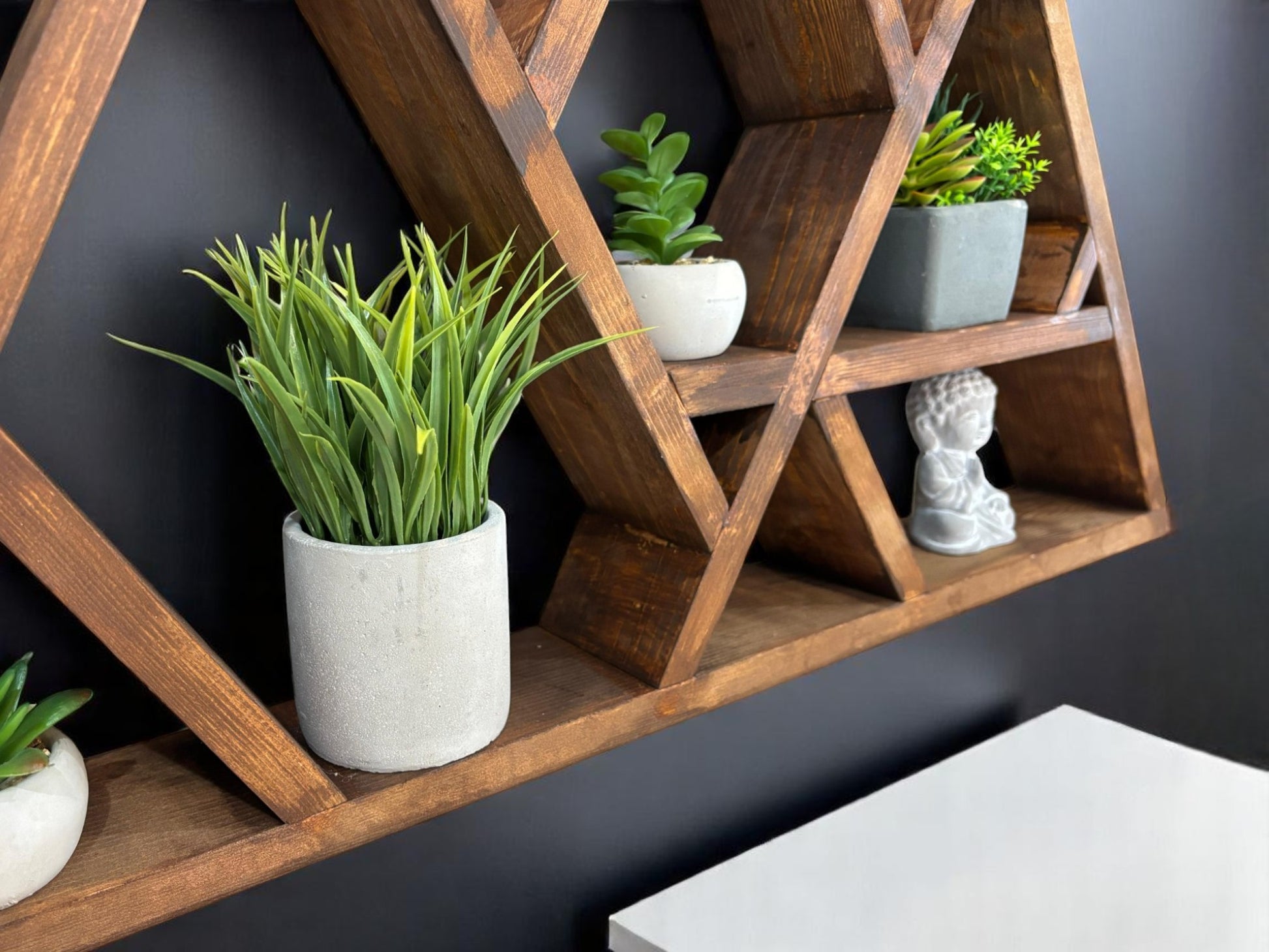Bring the serenity of the mountains into your space with our Hand Made Wooden Mountains 3-Peak Shelf. Carefully crafted from high-quality wood, this unique shelf features five staggered mountain peaks, adding rustic charm and visual interest to any room.