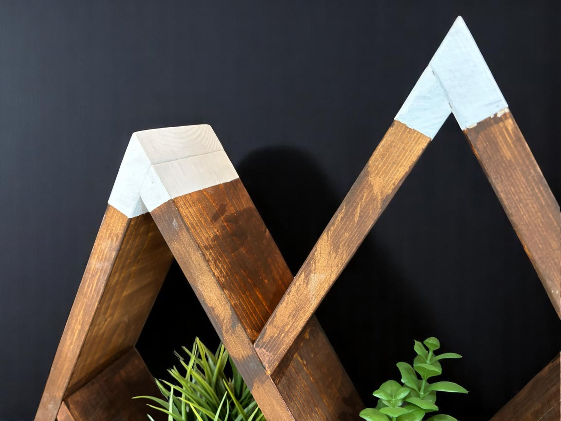 Choose between white-tipped peaks, for a snowy alpine look, or natural wood, for a minimalist, earthy feel. Whether used to display small plants, keepsakes, or nursery décor, this shelf is both functional and decorative.